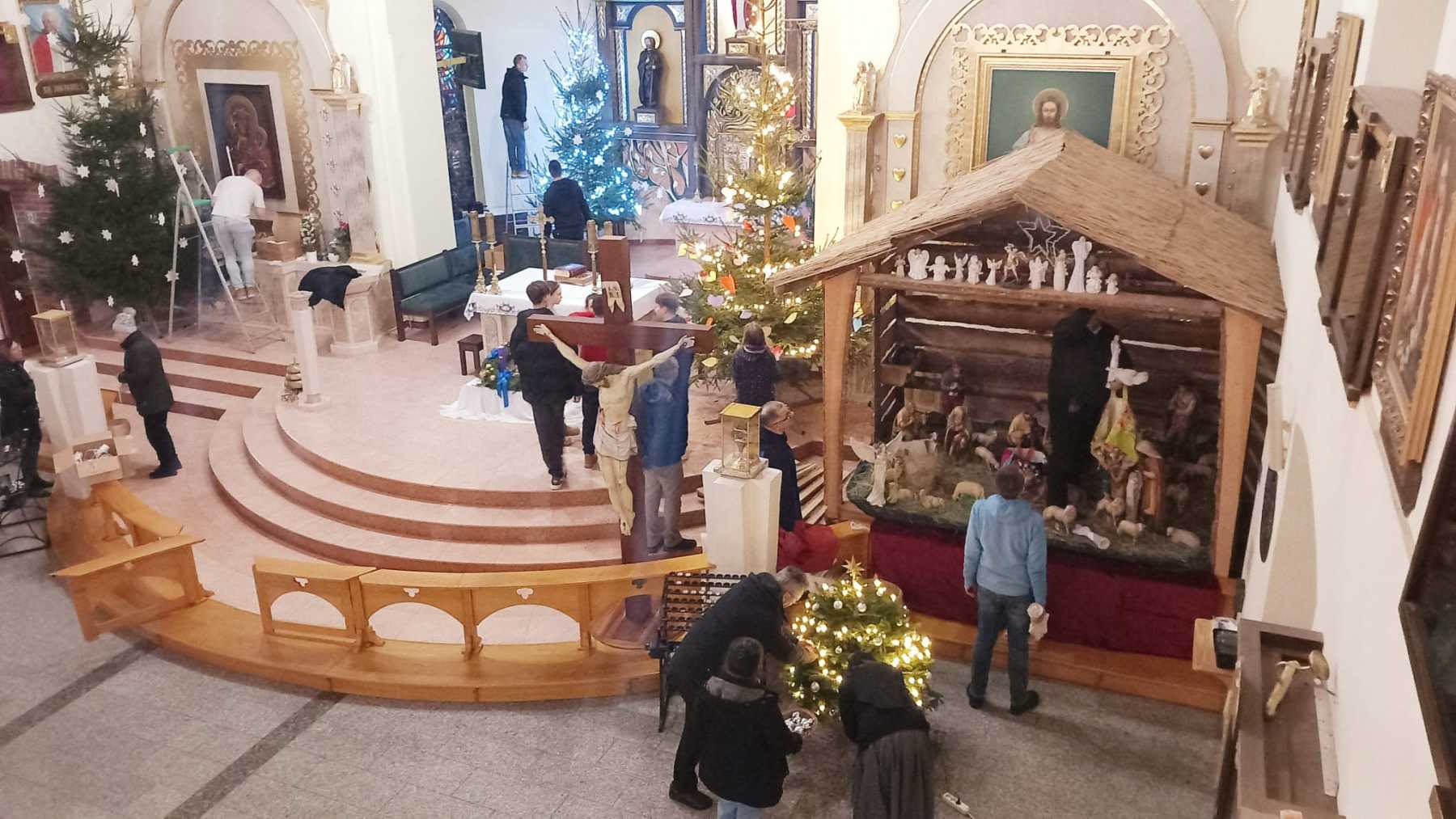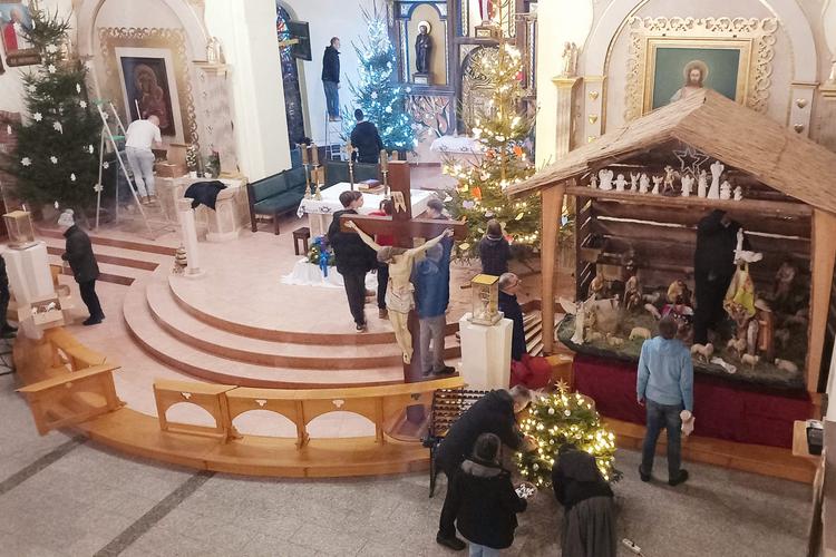 W przeddzień Wigilii Bożego Narodzenia sprawnie i radośnie liczna grupa Parafian, wraz z kapłanami pięknie udekorowała naszą świątynię do Uroczystości Bożego Narodzenia. Pilnie pracowały dzieci, pracowała młodzież oraz dorośli